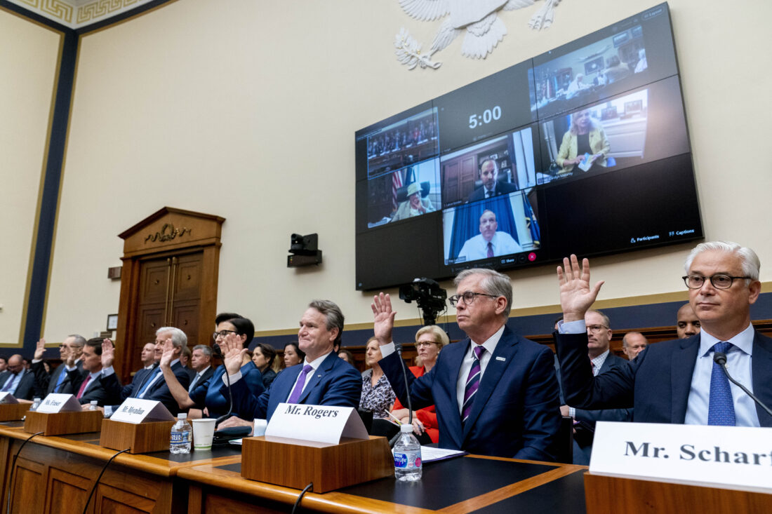 NEW YORK (AP) — The CEOs of the nation’s biggest banks returned to Capitol Hill for a second day Thursday, and Senate Democrats strongly urged them to do more to help and protect their customers, while Republicans questioned whether banks should weigh in on hot-button social issues.